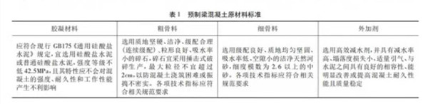 在預(yù)制梁的生產(chǎn)過程中,對于原材料的選擇是非常重要的,即要對施工材料品質(zhì)進行控制。預(yù)制混凝土梁的原材料包括膠凝材料、粗骨料、細骨料和外加劑等,其控制標(biāo)準(zhǔn)如表1所示。