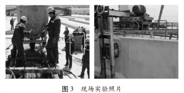 為了推動施工工地標(biāo)準(zhǔn)化建設(shè),提高裝備自動化程度,預(yù)制混凝土梁自動振搗控制柜在京藏高速路某標(biāo)段預(yù)制梁進行了試用,取得了預(yù)期效果,提高了混凝土澆筑質(zhì)量,降低了生產(chǎn)成本。圖3為現(xiàn)場實驗照片。